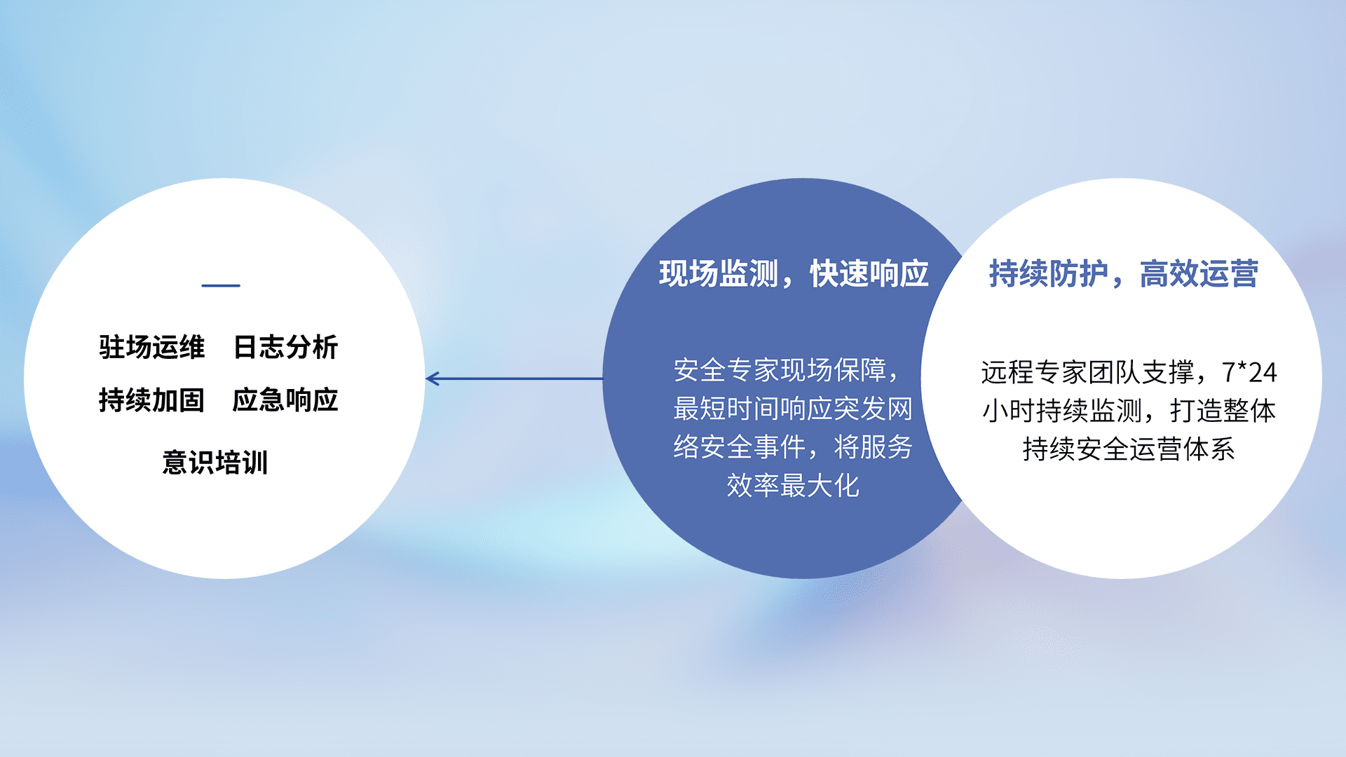7X24小时持续监测安全事件,保持安全策略有效性,降低资产脆弱性风险,,,精准拦截黑客攻击,,,减少被黑客利用的机会,,,第一时间遏制,,降低损失。。。